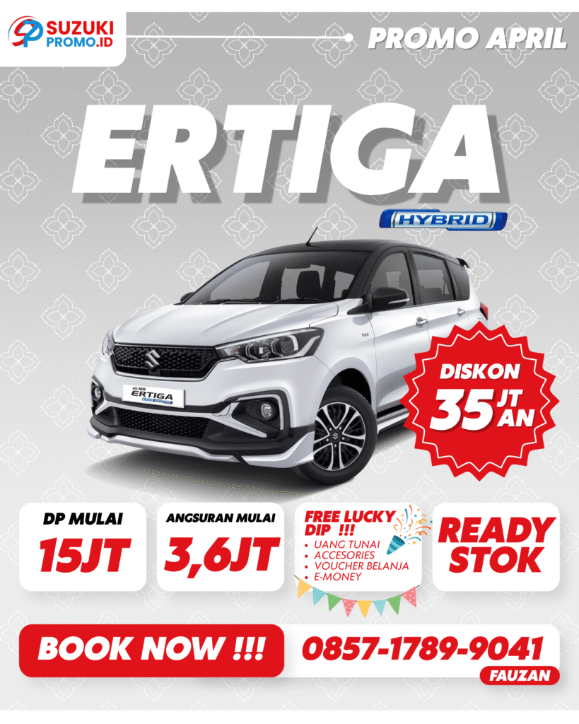 Suzuki All New Ertiga Hybrid menggabungkan teknologi hybrid dengan desain modern. Dilengkapi dengan aksesoris tambahan yang membuat perjalanan bersama keluarga menjadi lebih menyenangkan